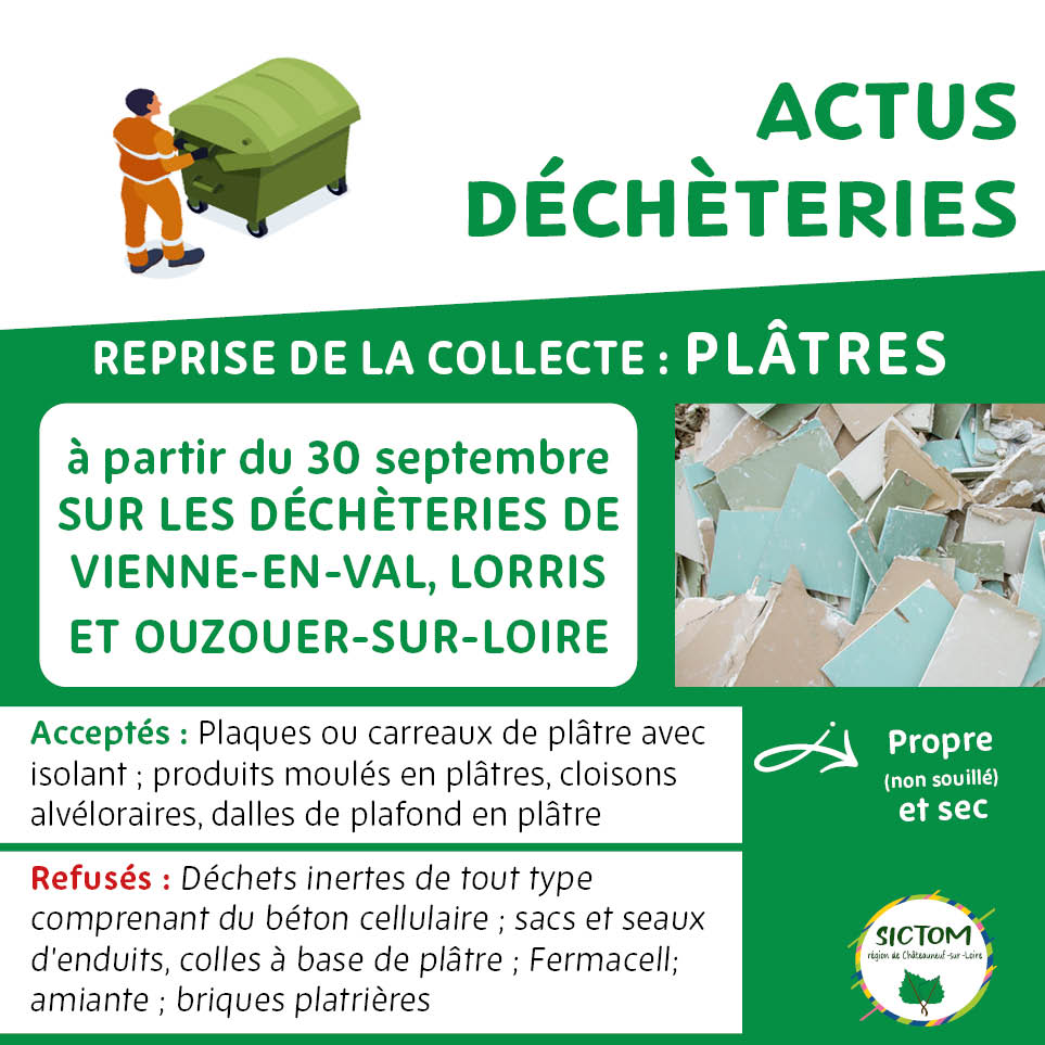22 septembre - Communication SICTOM - Reprise de la collecte Plâtre sur 3 déchèteries