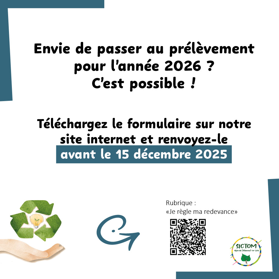 5 novembre - Communication SICTOM : Prolongation des inscriptions au Prélèvement en Six Fois