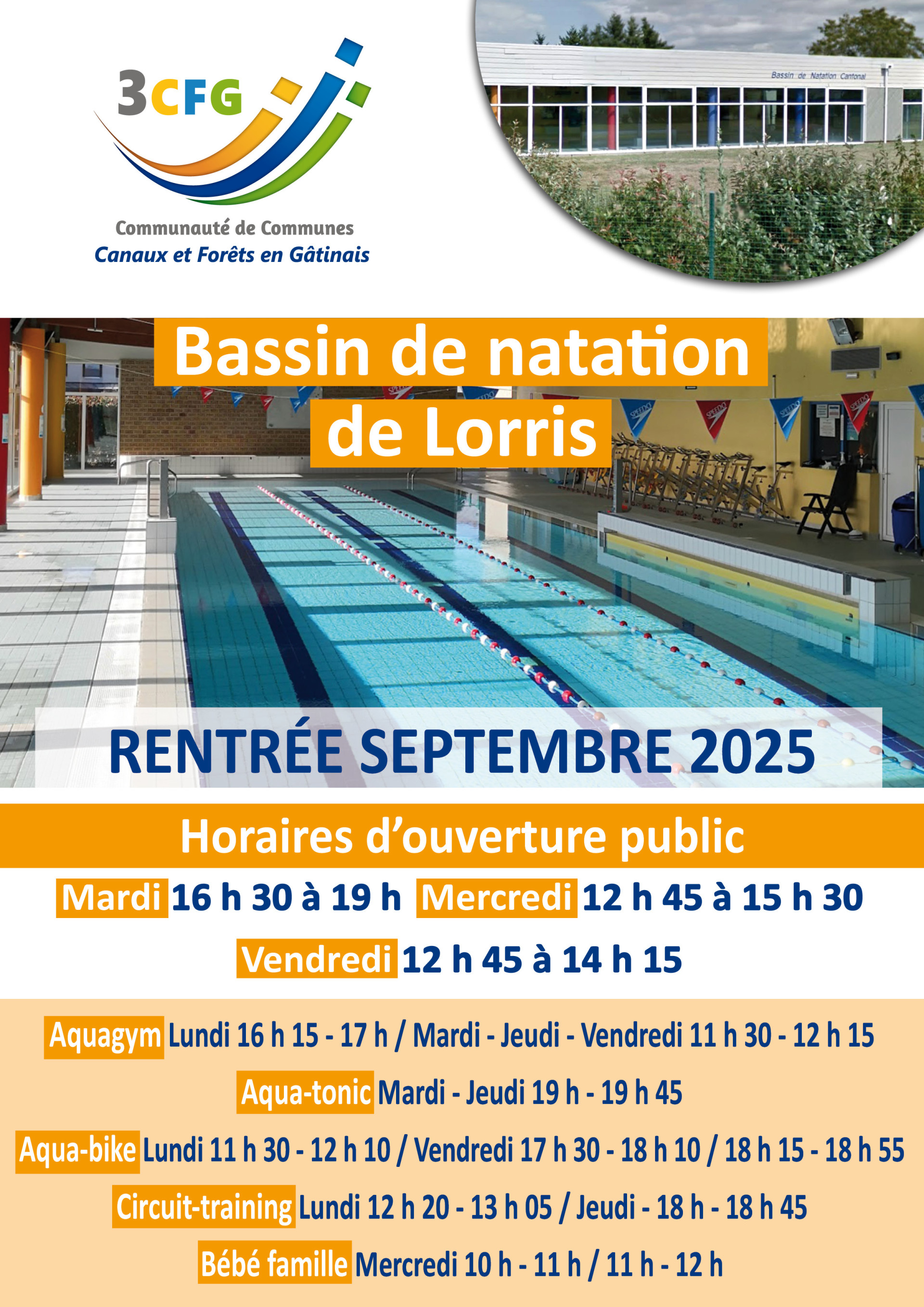 23 septembre – JOURS ET HORAIRES D’OUVERTURE DE LA PISCINE DE LORRIS 2025/2026